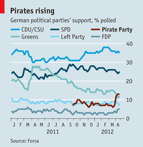 But also criticsm is voiced in the recent coverage. The Economist, for example, calls Pirates in its recent printed edition “slightly barmy” and the Sueddeutsche Zeitung published a series of articles on unfortunate comparisons of the Pirate Party’s rise with that of the NSDAP by the secretary of the Berlin Pirate caucus (German article) and some right wingnuts in the party who among other statements denied the Holocaust (German article). Read the rest of this entry »